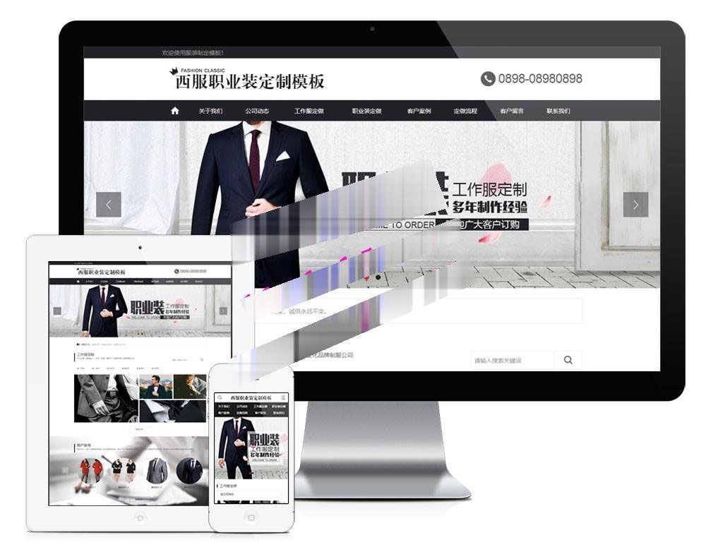 易优cms黑色西服职业装定制企业网站模板源码 带手机端 带后台