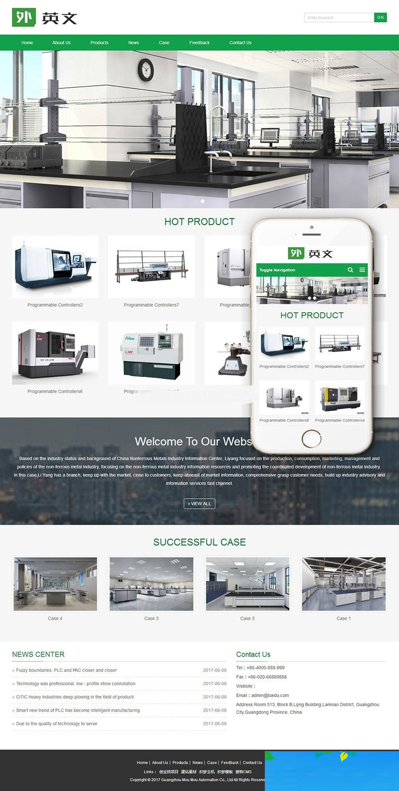 织梦dedecms绿色响应式外贸打印设备公司网站模板(自适应手机移动端)