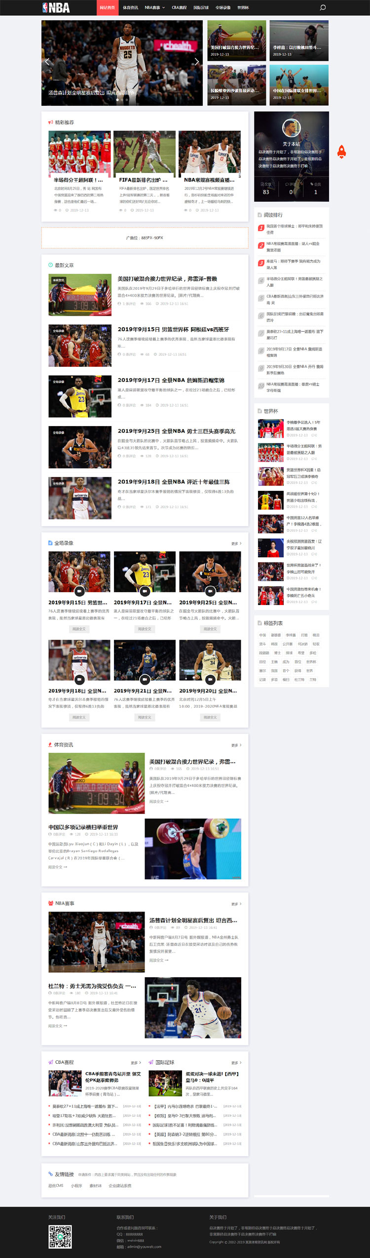 织梦dedecms响应式NBA体育赛事新闻资讯网站模板(自适应手机移动端)