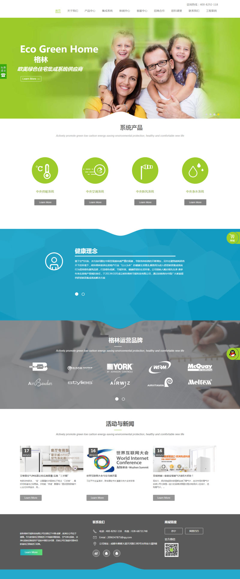模板主要适用于,节能环保,净水器网站、空调设备网站、公司产品展示网站等。
