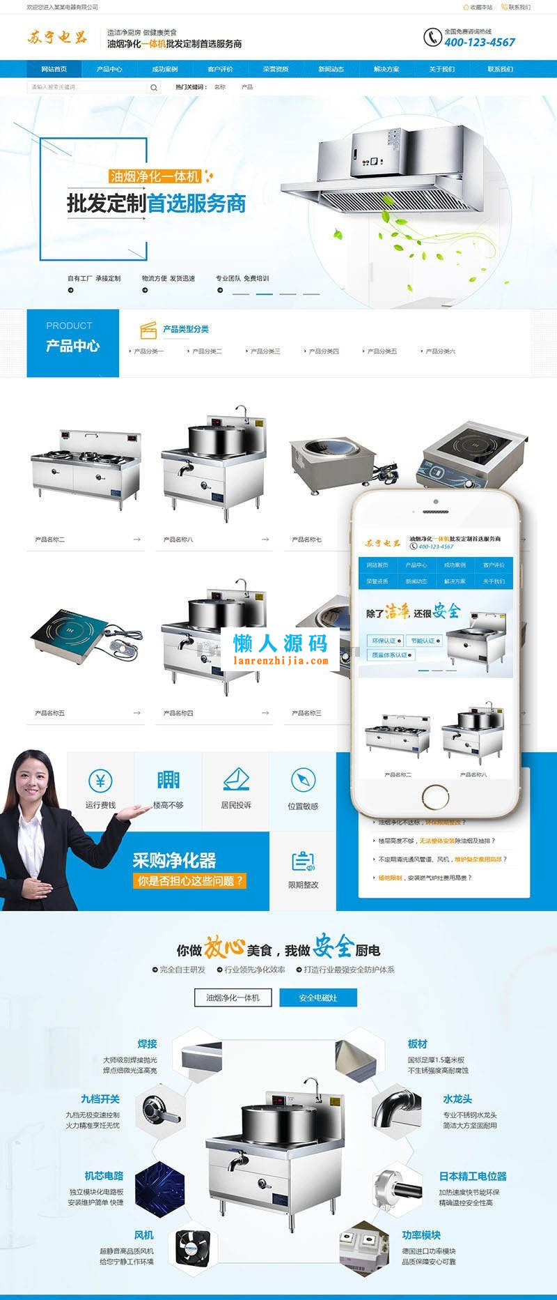 织梦最新内核开发的模板,该模板属于营销型企业通用类、油烟净化器、空气净化器、商用电磁炉、油烟一体机类企业都可使用,