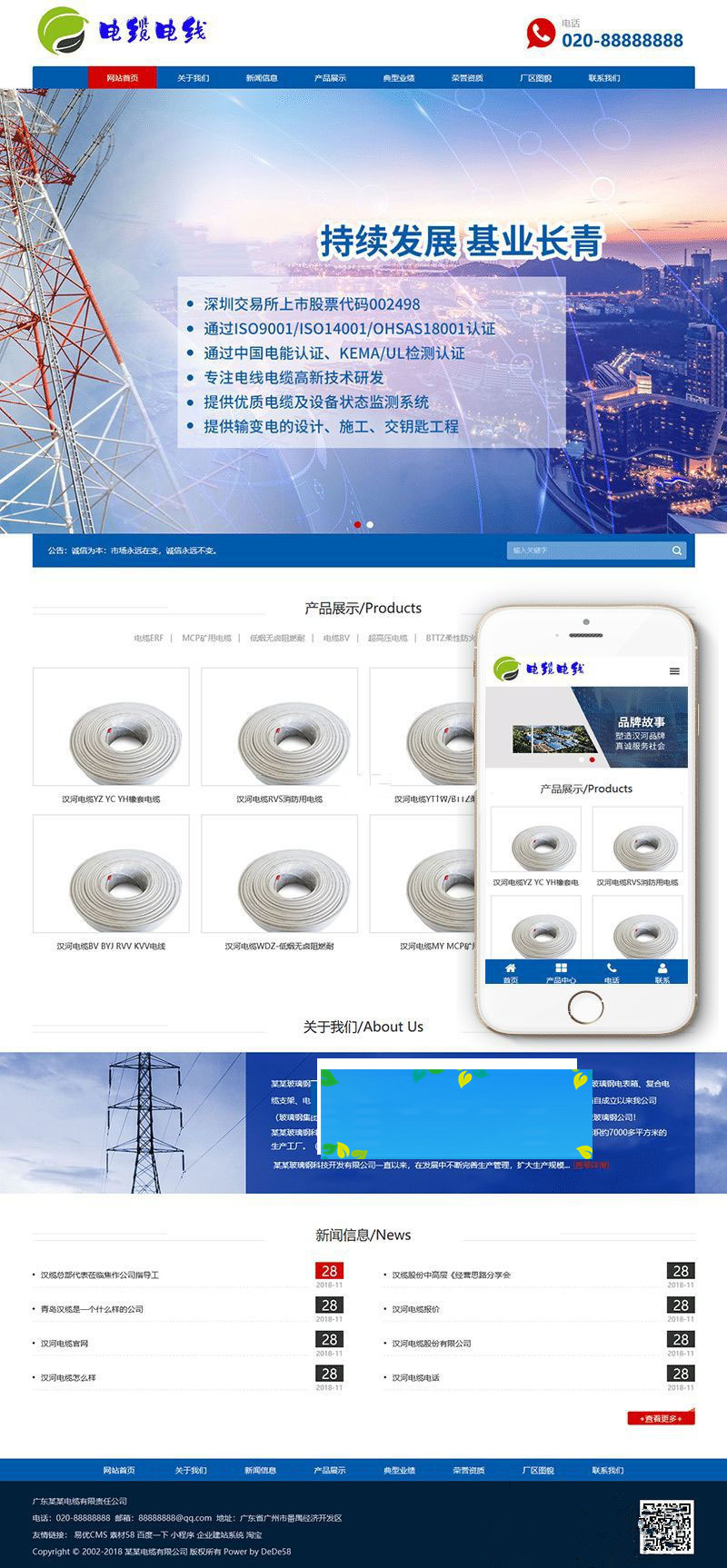 织梦dedecms响应式电缆电线公司网站模板(自适应手机移动端)