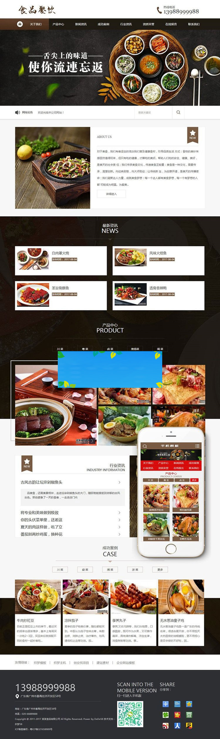织梦最新内核开发的模板,该模板属于企业通用类、餐饮、食品类企业都可使用,