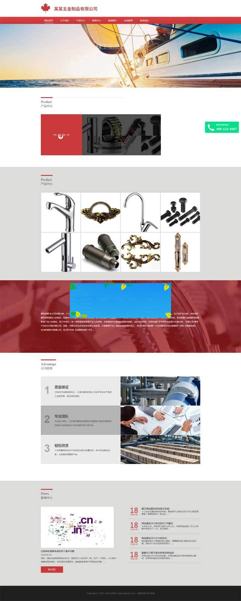 主要有:关于我们、产品中心、新闻中心、案例展示、在线留言、联系我们等模块页面。