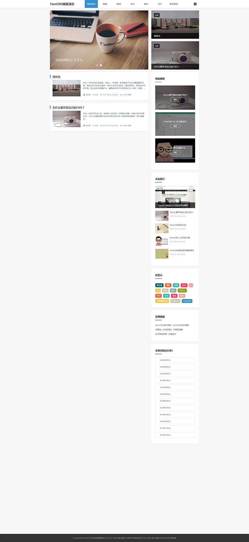 YZMCMS漂亮大气简洁响应式博客模板,内附安装方法和模板说明
