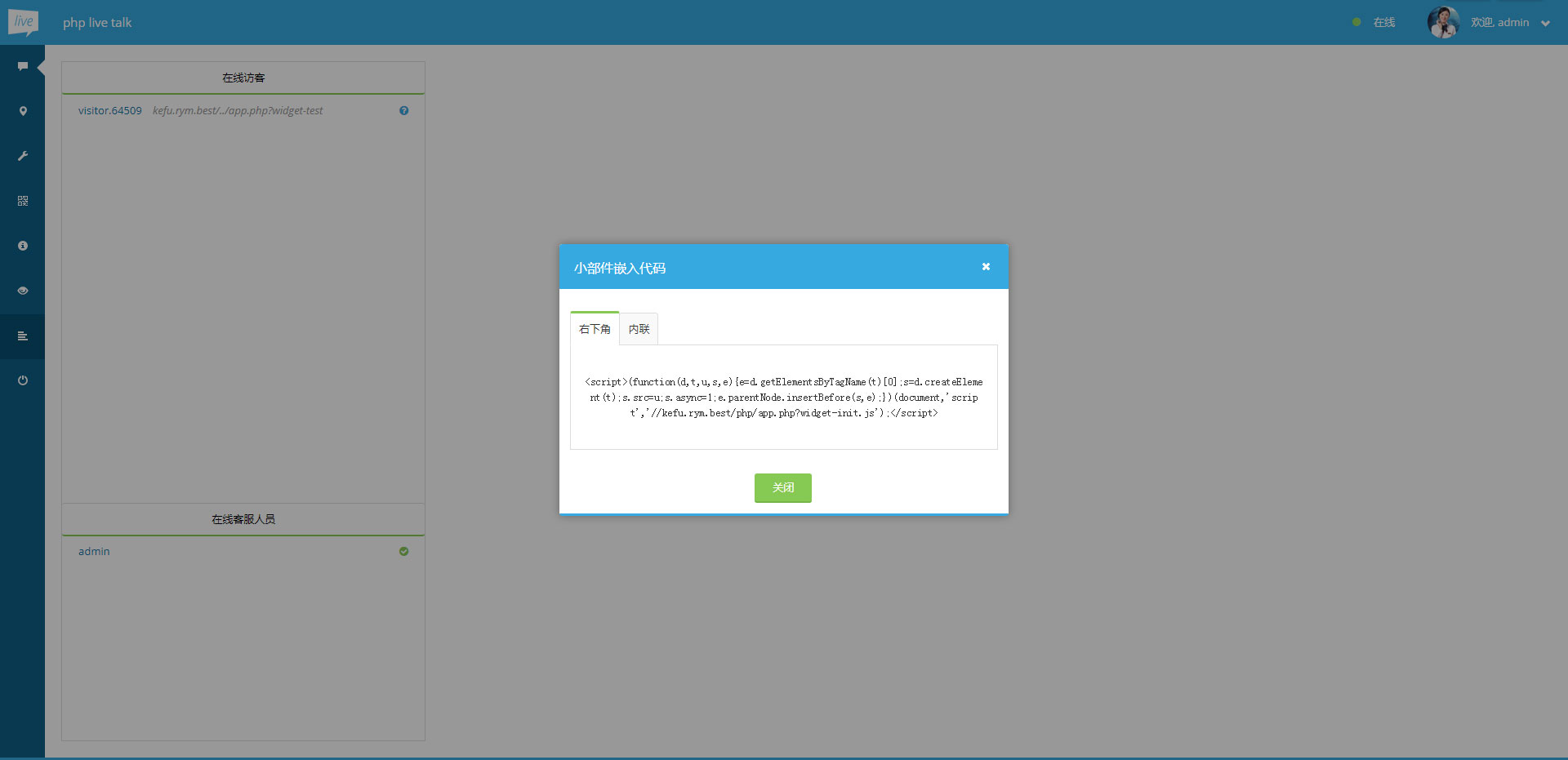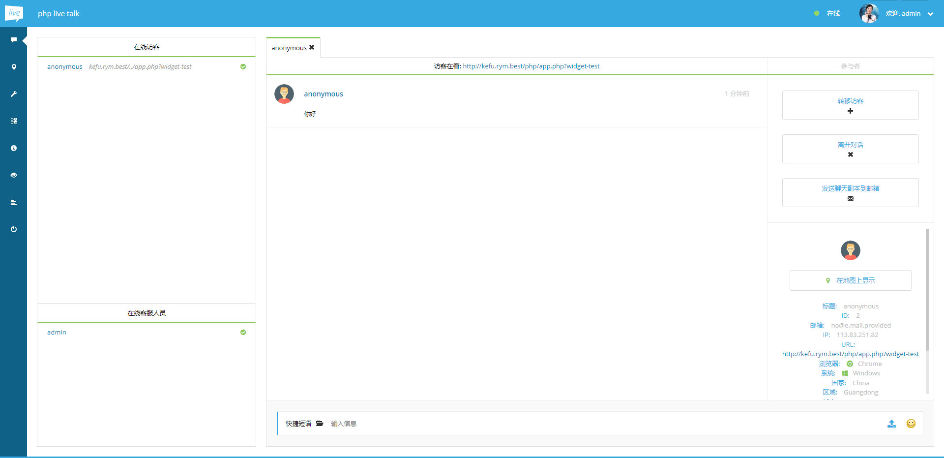 7、点击服务器填写“登录表单”后开始使用在线客服系统;