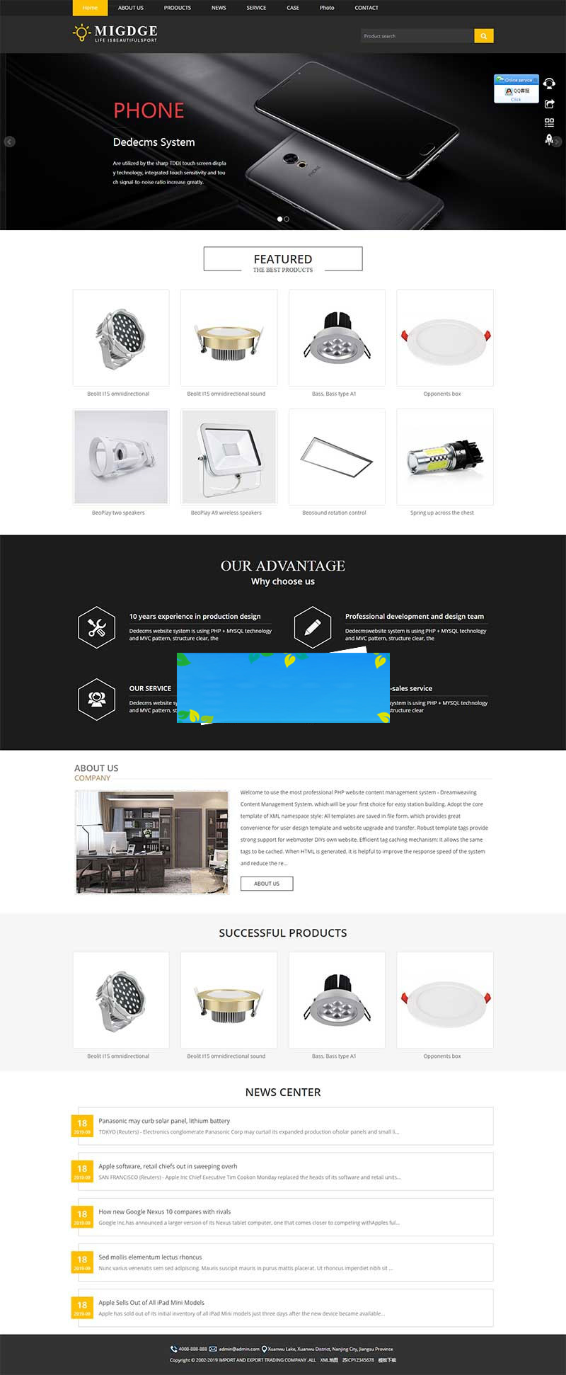 3、适用于灯具织梦模板、外贸网站源码、响应式织梦模板;