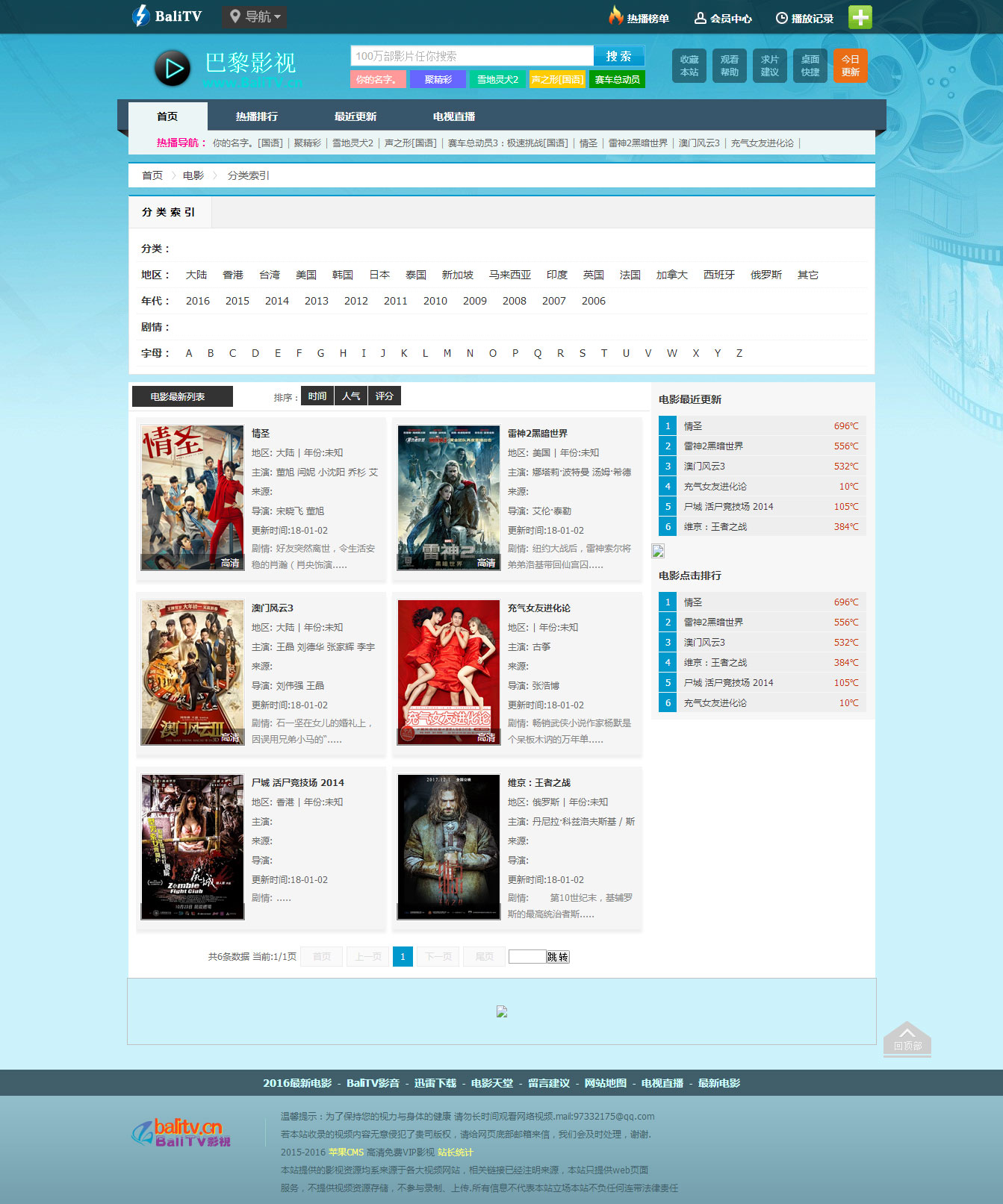 苹果cmsv8巴黎影视网站模板,主题风格非常美观的一款电影视频网站模板