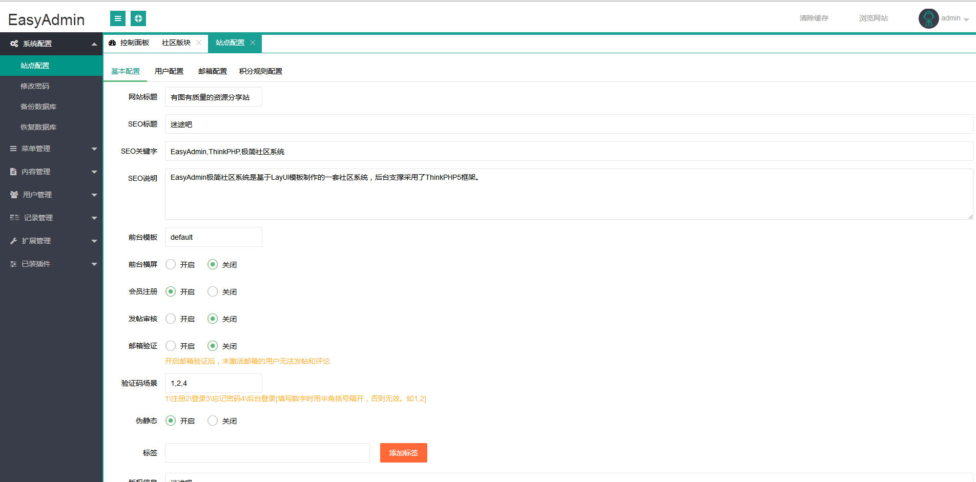 EasyAdmin极简社区系统源码,简称EAdmin极简社区,基于LayUI模板制作的一套社区程序,后台支撑采用了ThinkPHP5框架。