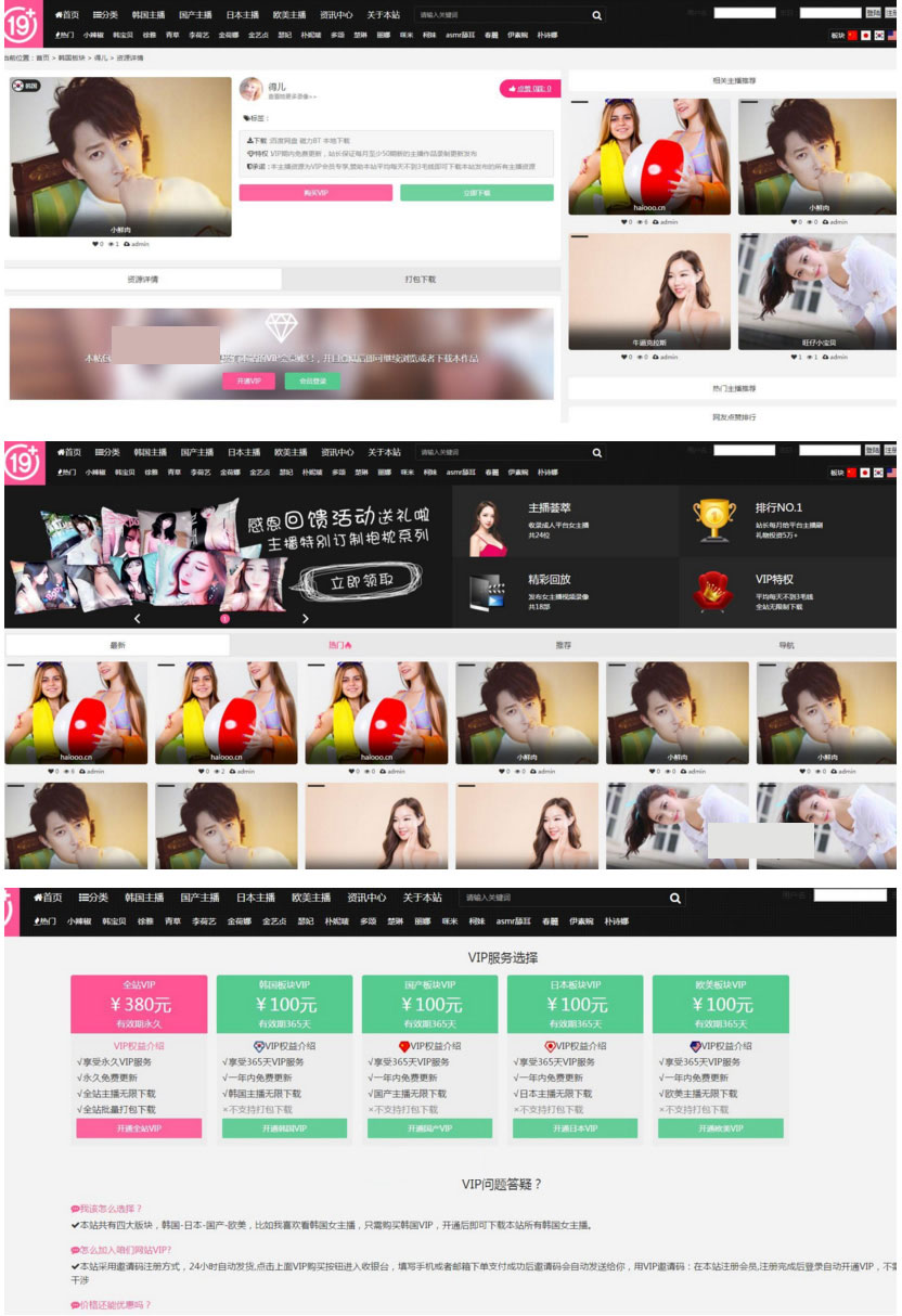 92kaifa开发的帝国cms7.5美女主播视频网站源码 自适应手机端,带vip会员下载功能,内附安装说明
