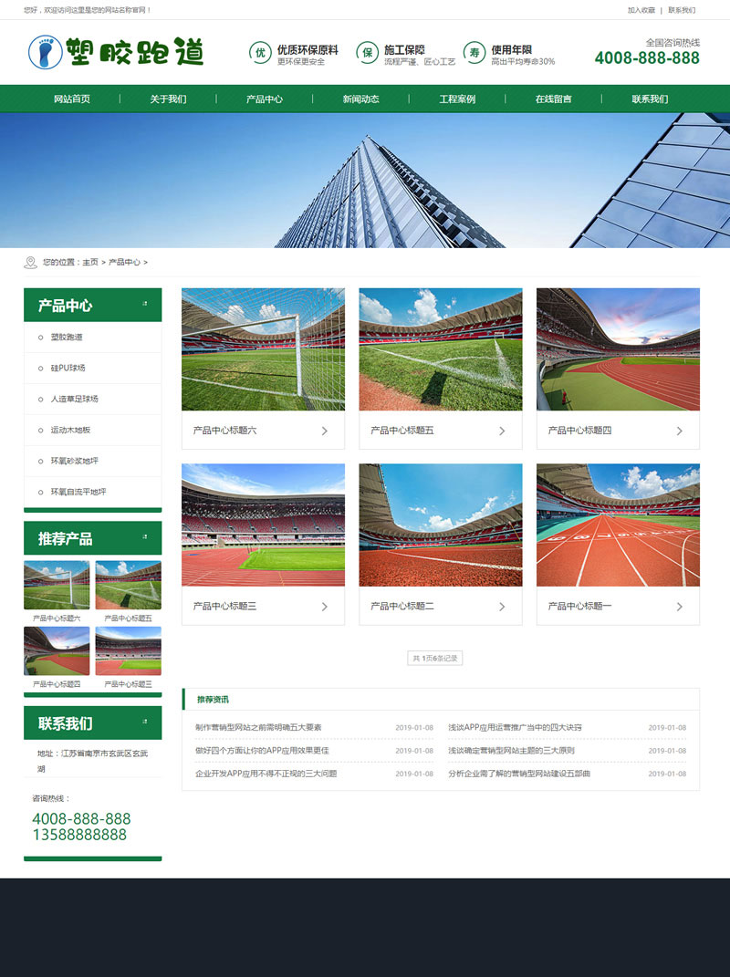 3、适用于塑胶跑道网站源码、塑胶材料织梦模板;