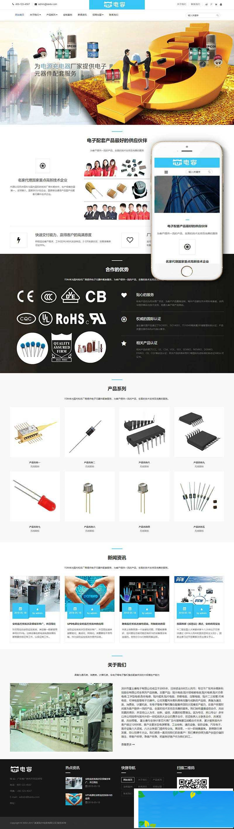 织梦最新内核开发的模板,该模板属于企业通用类、电容电阻、电子器件类企业都可使用,