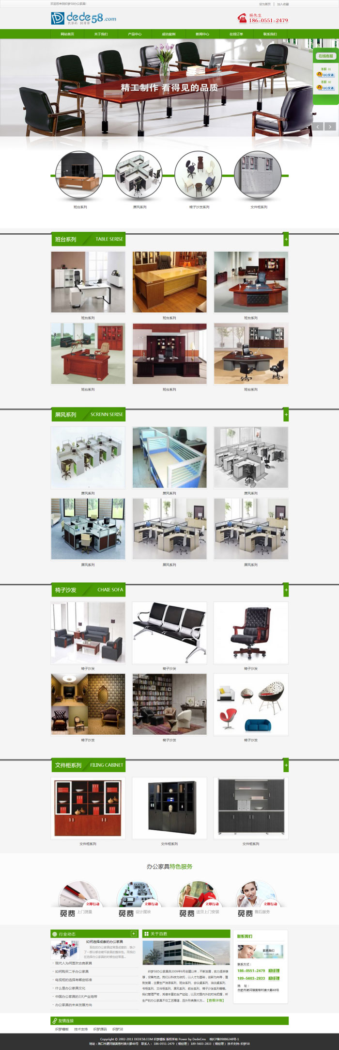 织梦dedecms绿色大气办公家具生产销售企业网站模板