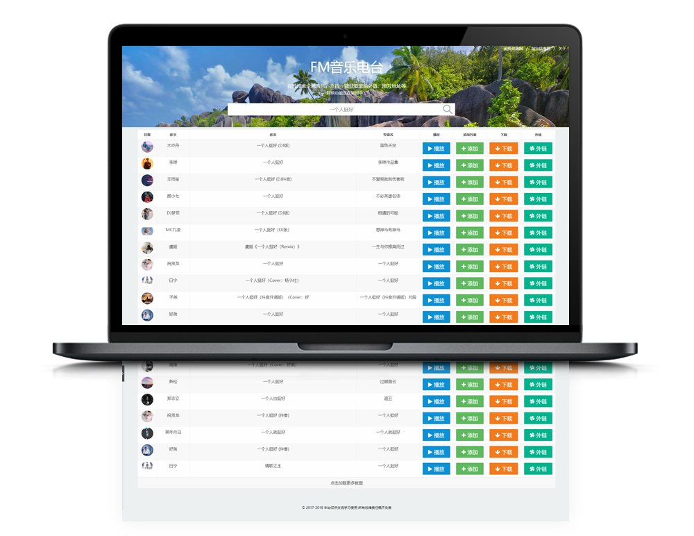 【聚合FM音乐在线播放下载】在线搜索全网音乐支持歌曲外链下载等[免费开源]