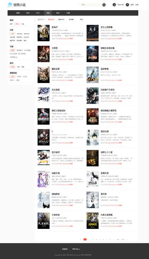 狂雨小说cms提供了基础小说功能,包括: