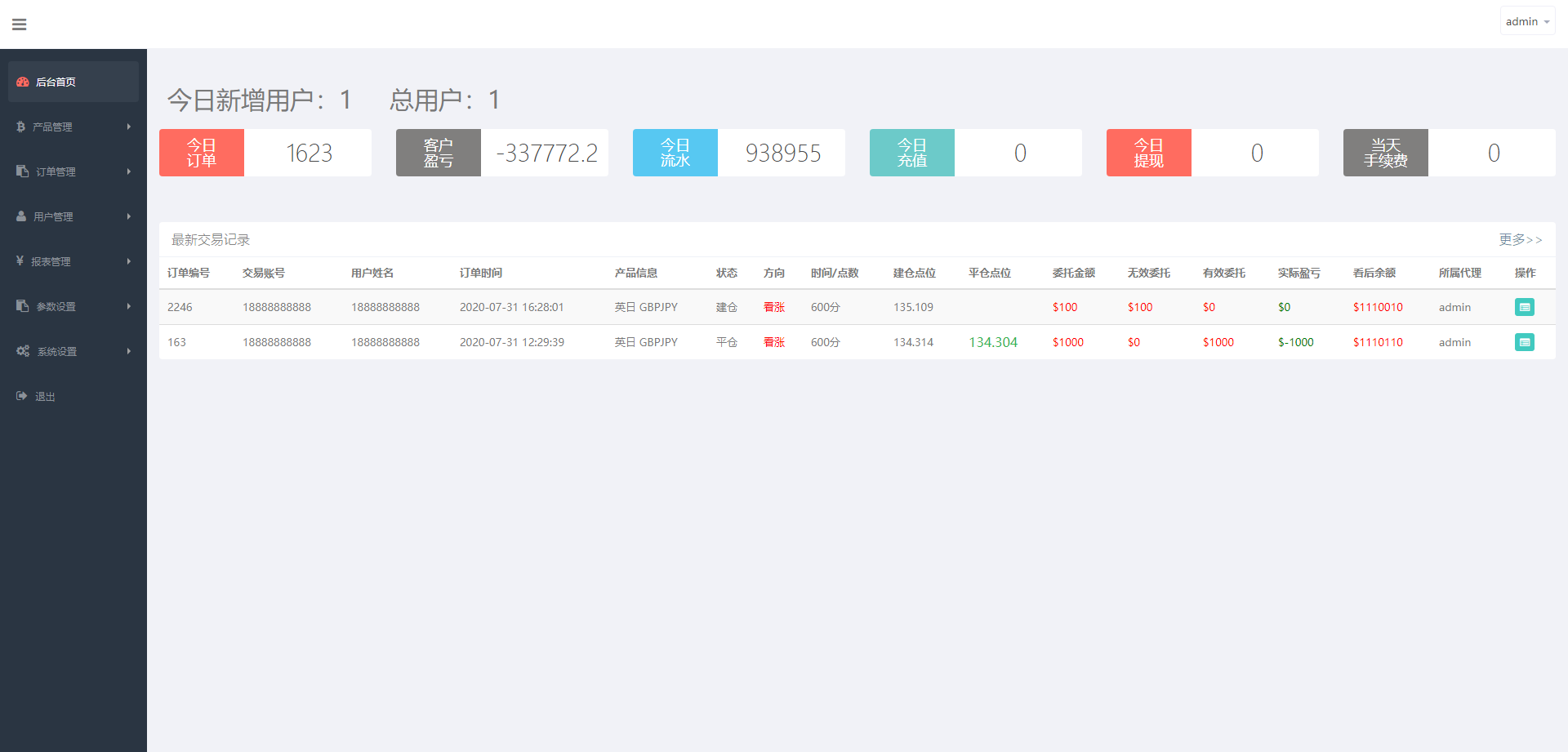 前台账户:18888888888