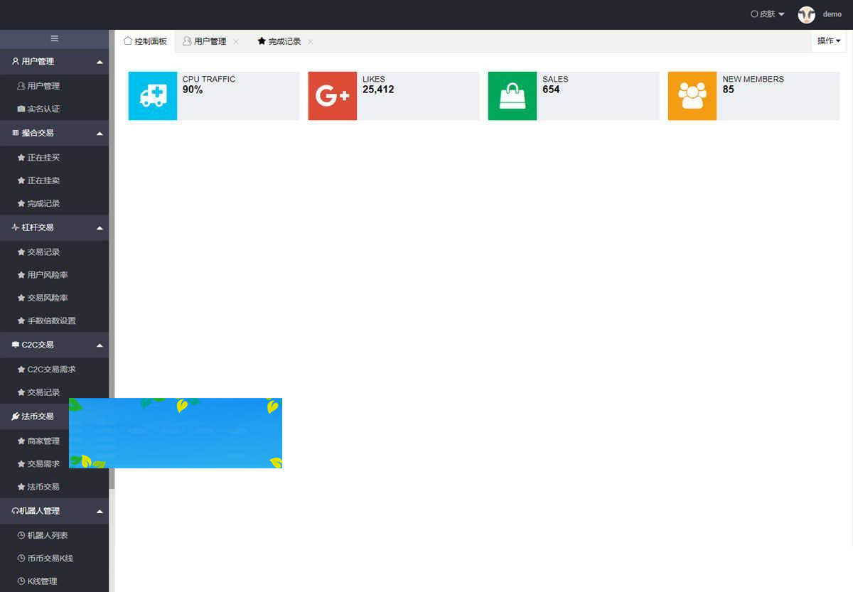行情页面为各个交易对的行情信息,后台可调控交易对。