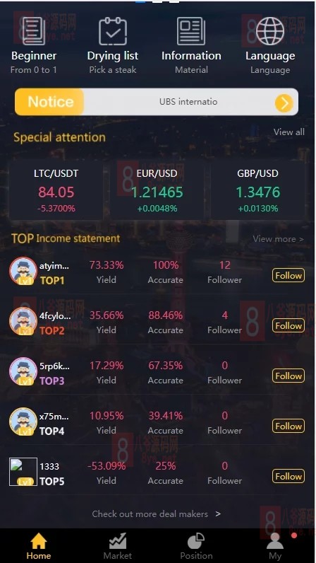 另一个版本的玖胜,点位/时间,双面盘,带很有特色的跟单/发单功能,带杠杆,多个交易类目可以选择。UI也很漂亮,和玖胜有点像,但是不一样。php的,部署并不是很复杂,带简易教程。玖胜的接口是websocket的,不知道这套改没改免费线,大家自己试吧,不是免费线的就可以删了。3000一个月的采集线,不是一般人能玩的。