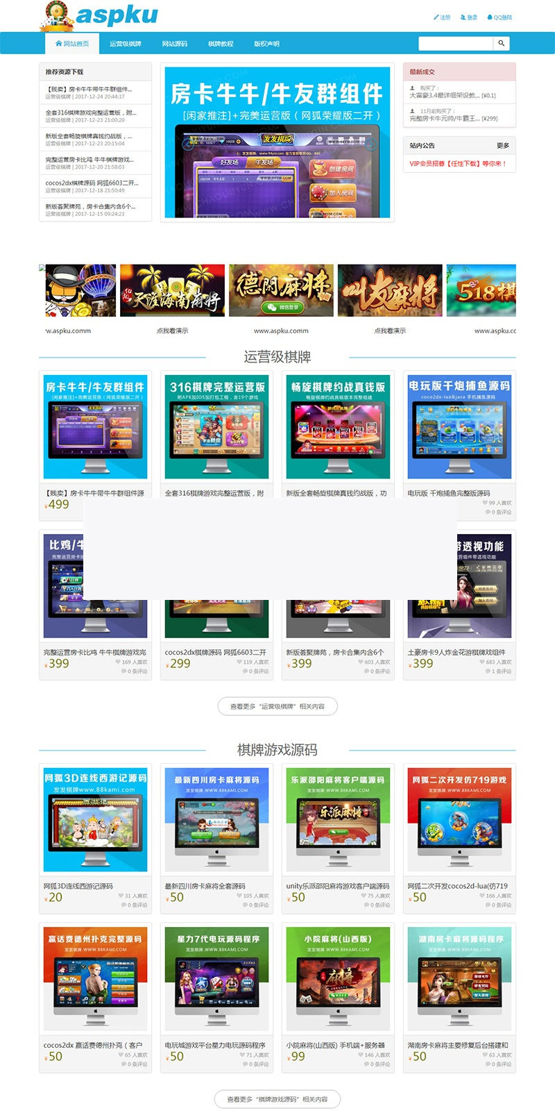 价值几千元的游戏资源网源码整站下载 (全站数据打包),数据里面有200多个宝贝。价值2500大洋,PHP+Mysql源码交易平台整站源码。本系统对运行环境无特别要求,PHP5.2以上、支持GD库即可。