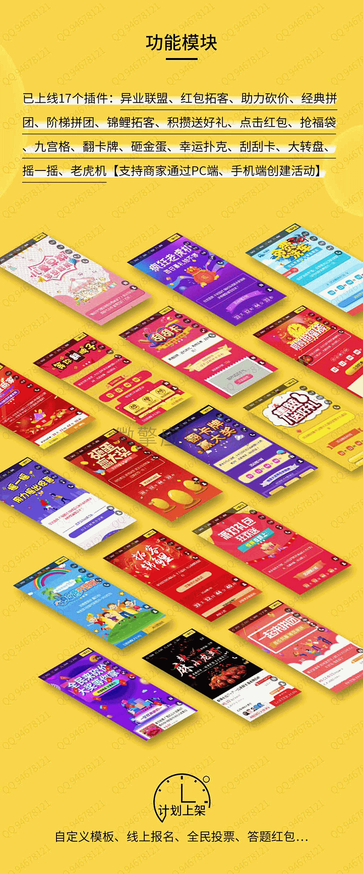 囊括有市场上热门、常用的营销系统:锦鲤营销、红包拓客、抽奖营销等模块,切可根据商家自身需求自由搭配。