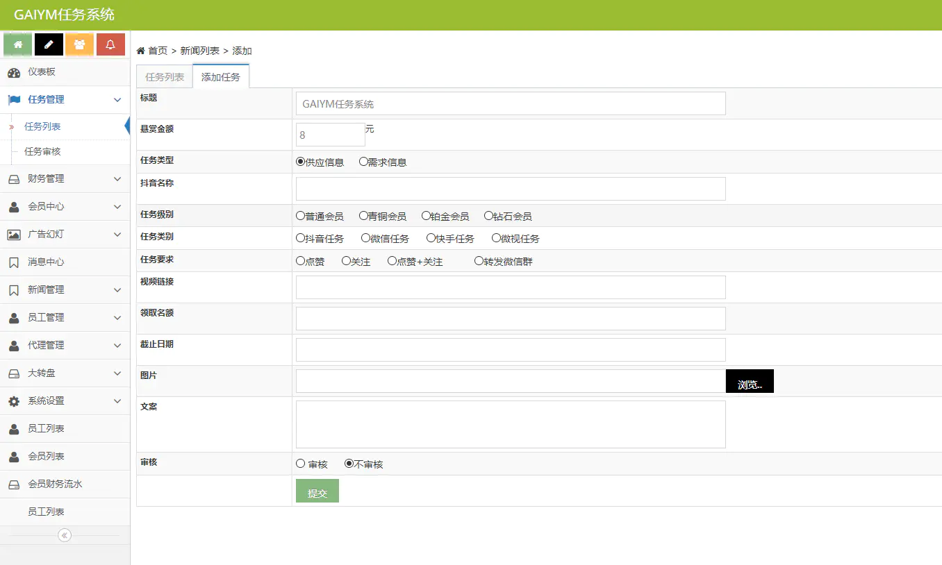 3.会员等级功能,会员级别越高可领取任务次数越多,会员购买金额后台可设置;