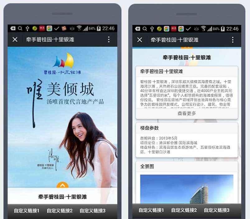 七、用户自定义链接设置。底部有3个自定义链接,可以自定义导向您配置的页面。