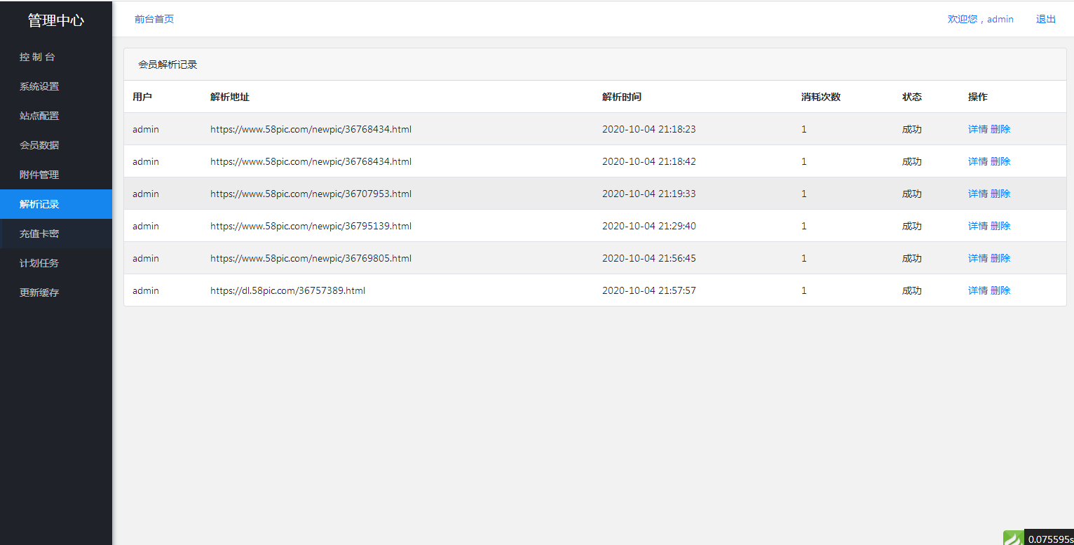 后台实测截图