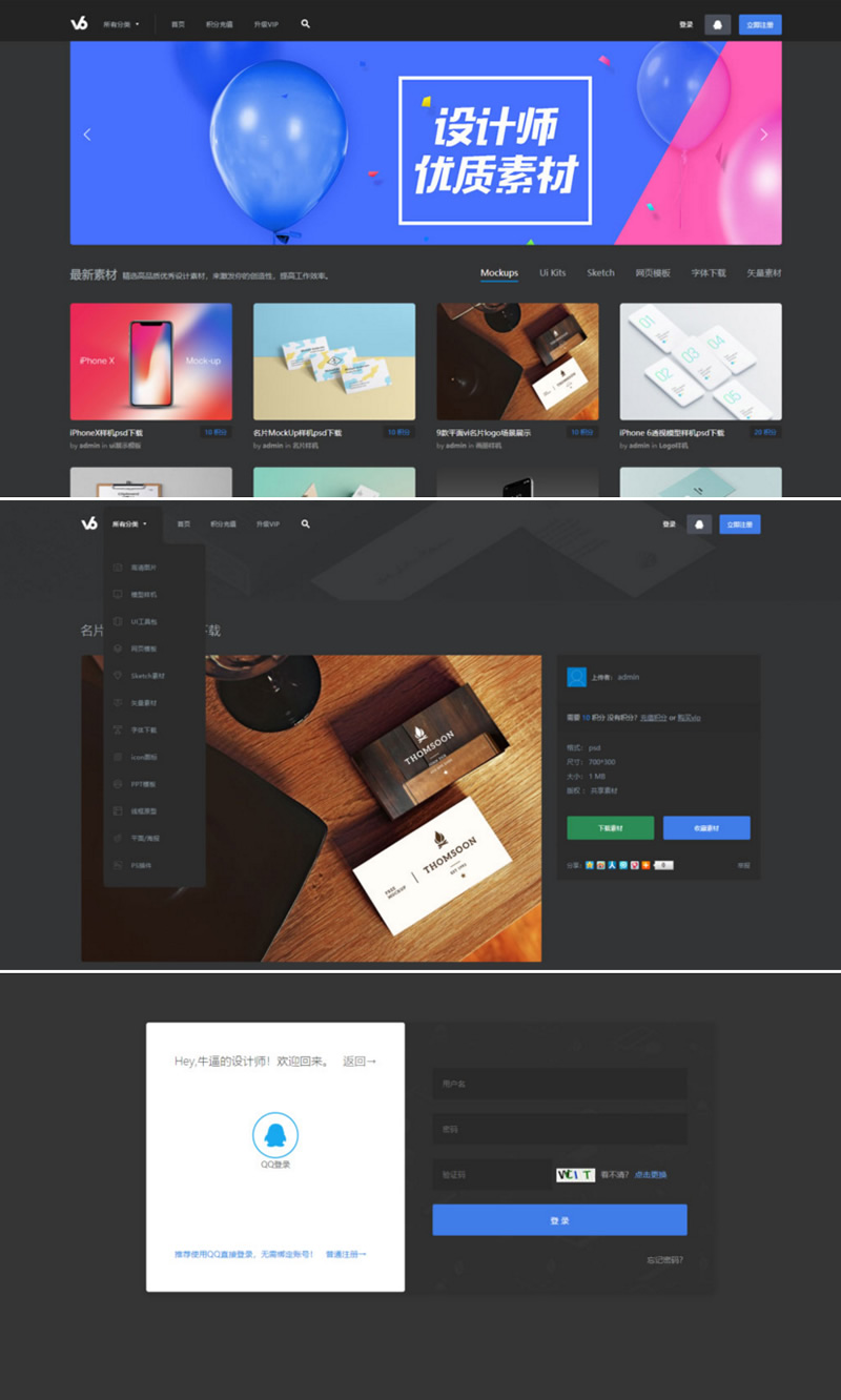 织梦dedecms黑色精美仿v6design设计素材图片资源下载网站模板