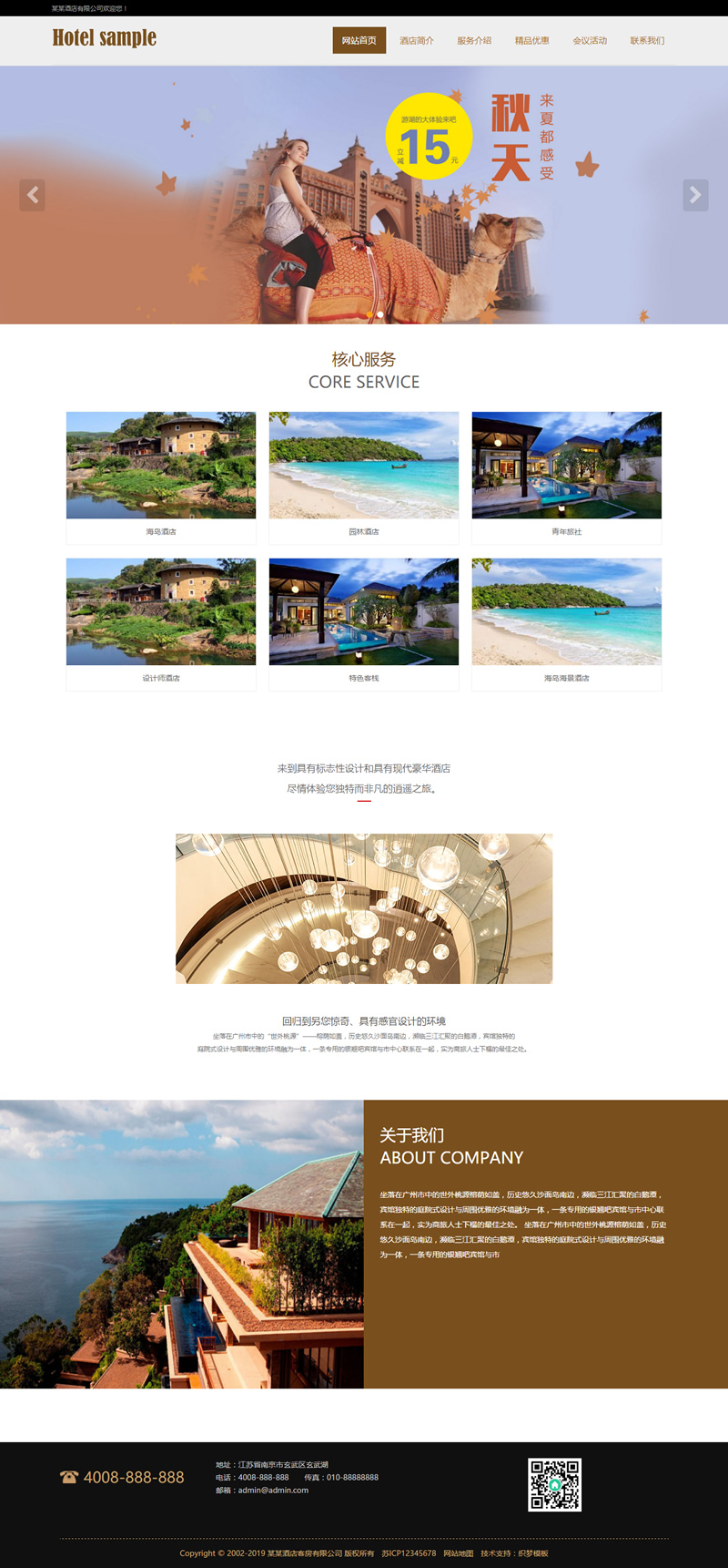 (自适应手机版)响应式酒店客房服务类网站织梦模板 HTML酒店管理类网站源码下载