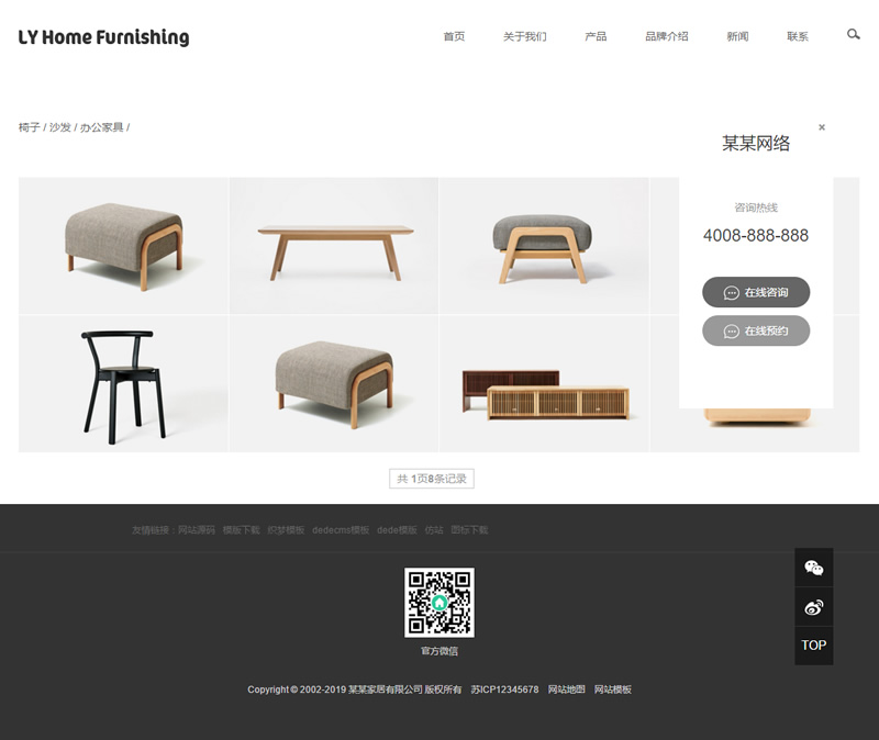 3、适用于家具家居织梦模板、家装橱柜网站源码;