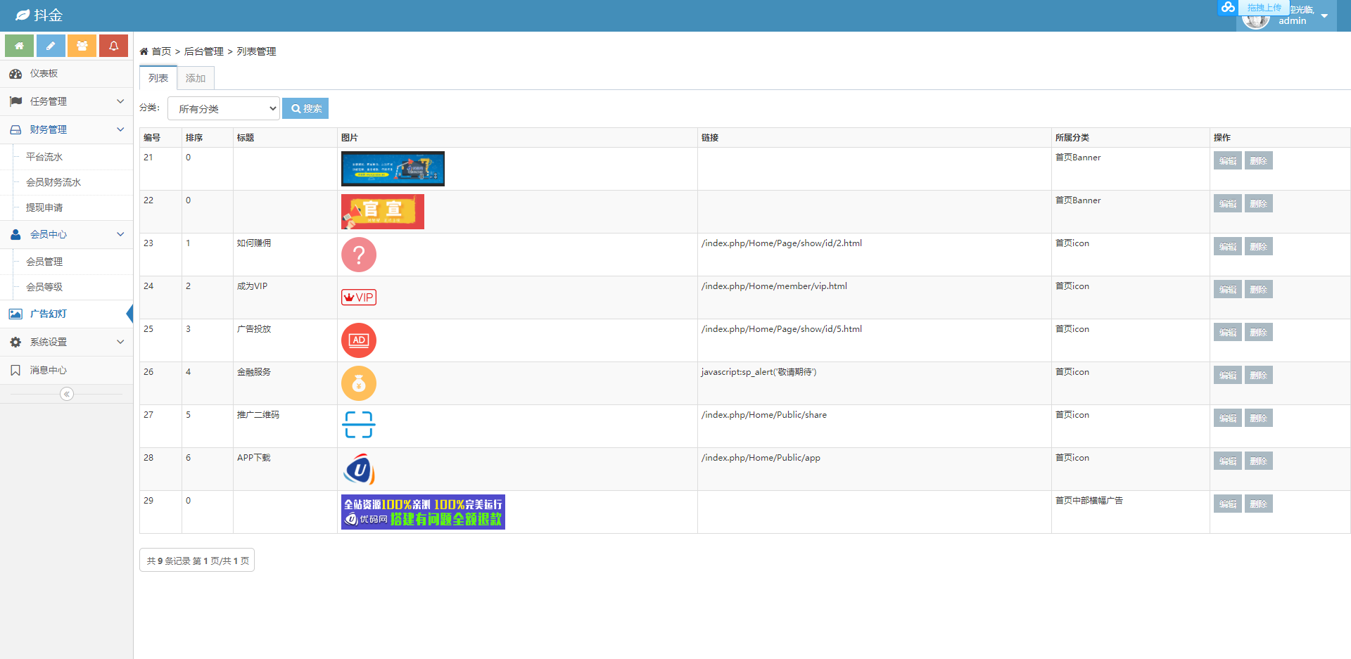后台/admin 用户:admin 密码:12345600