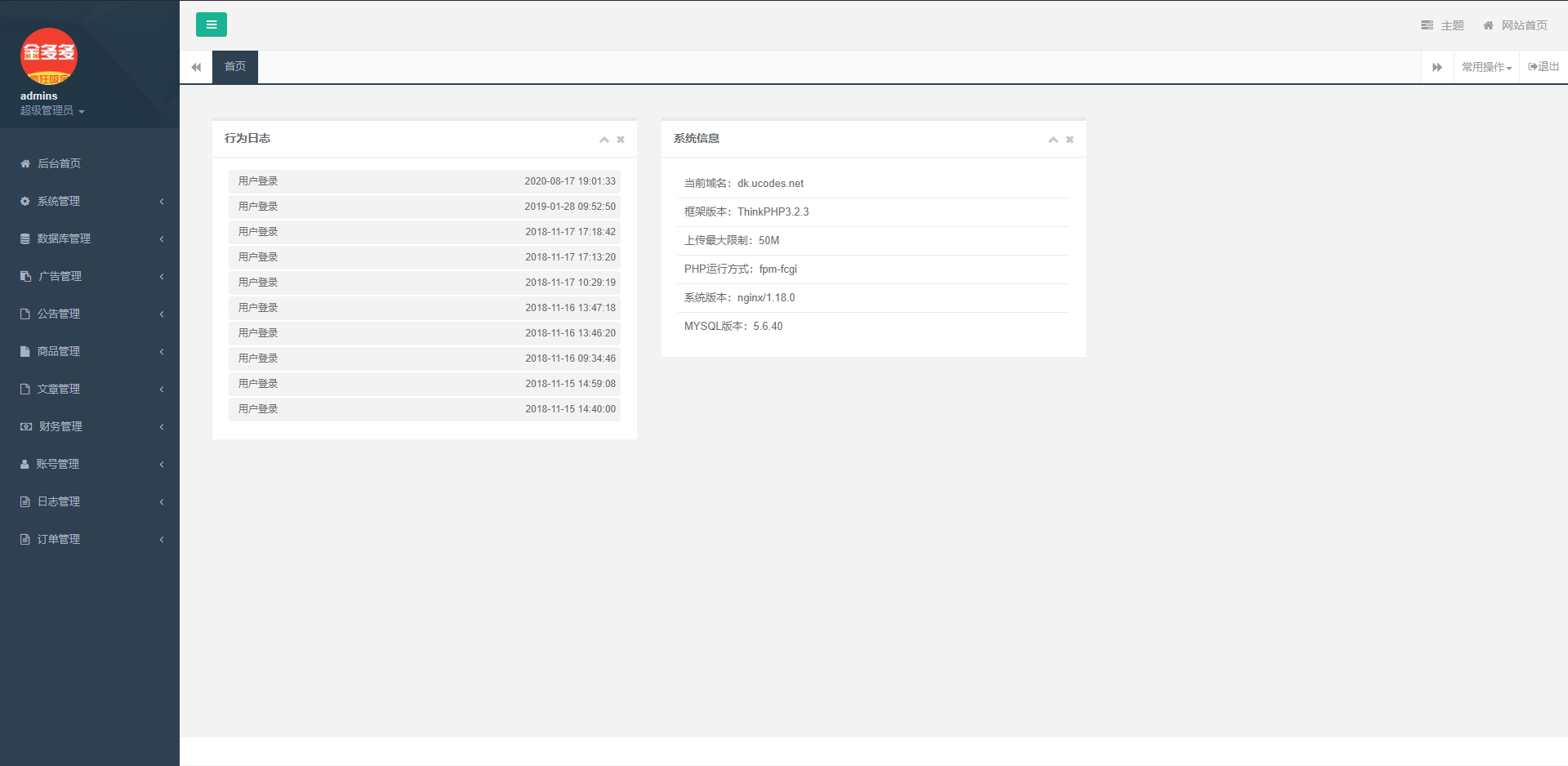 测试环境:宝塔面板 + Ng1.18 + php5.6 + mysql5.6