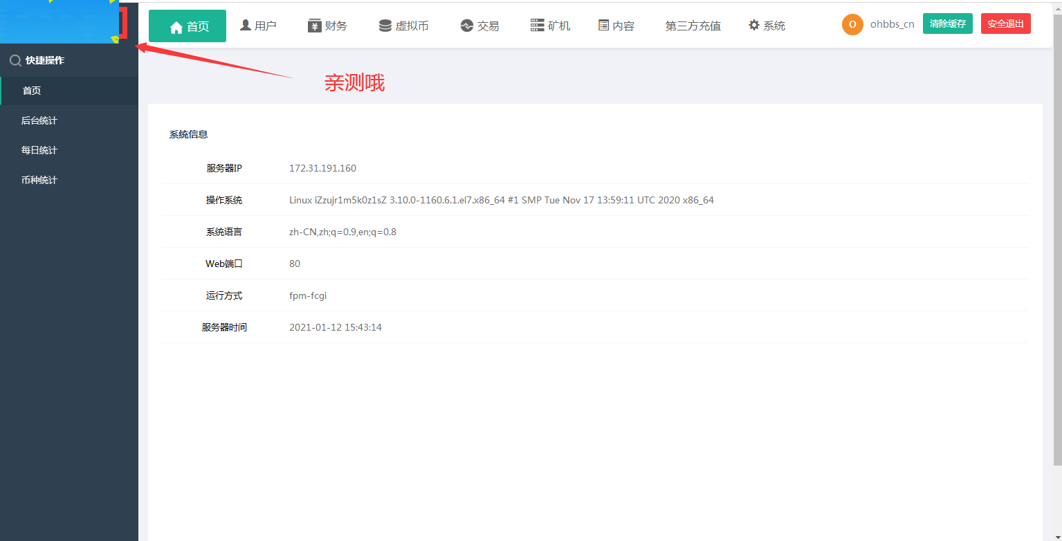后台账号:ohbbs_cn