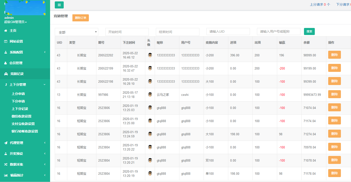后台截图: