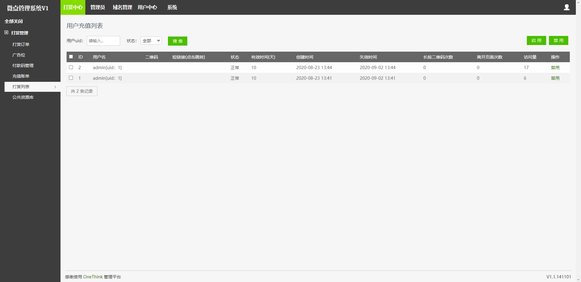 管理后台界面实测截图