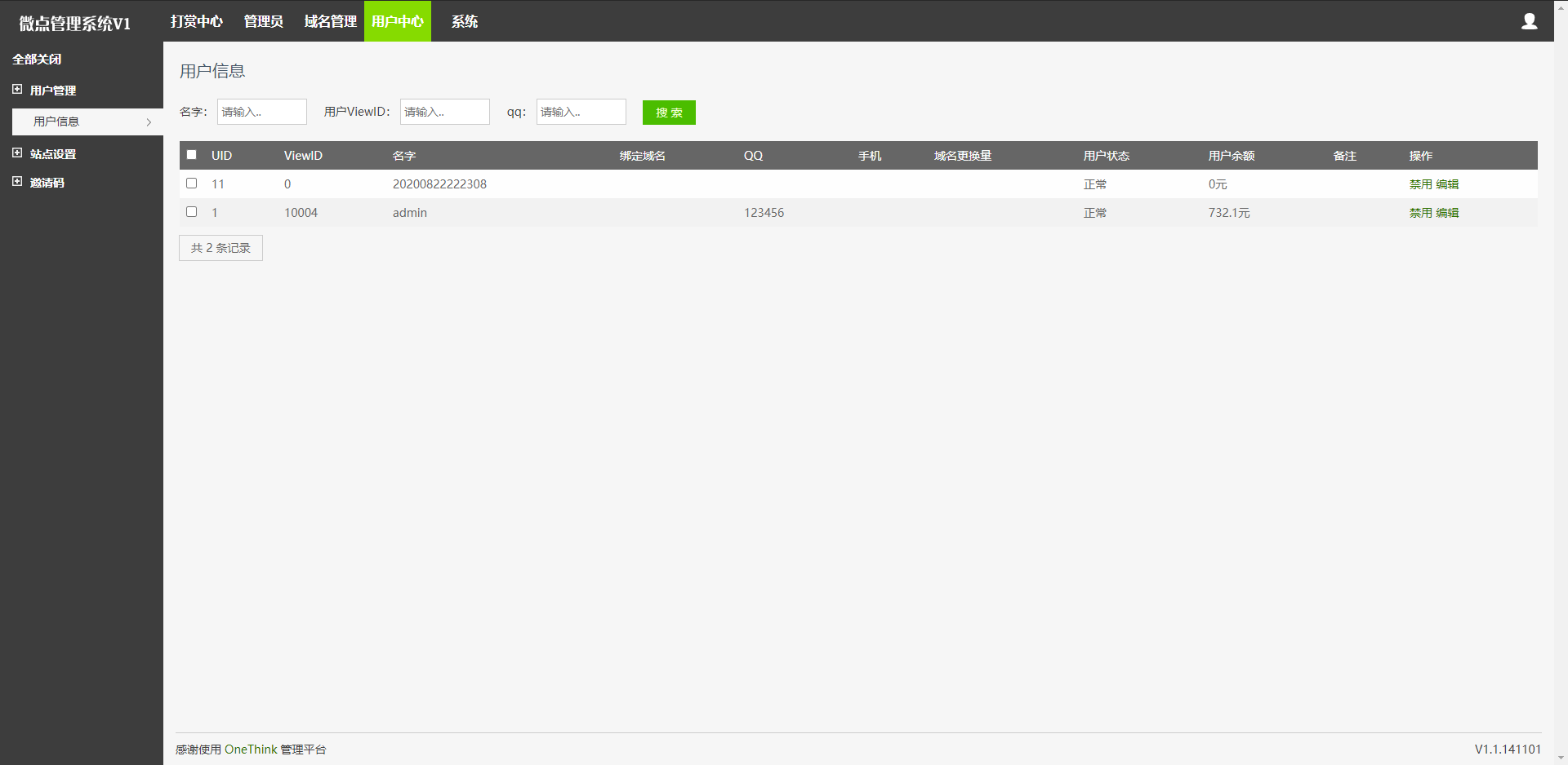 用户后台界面实测截图