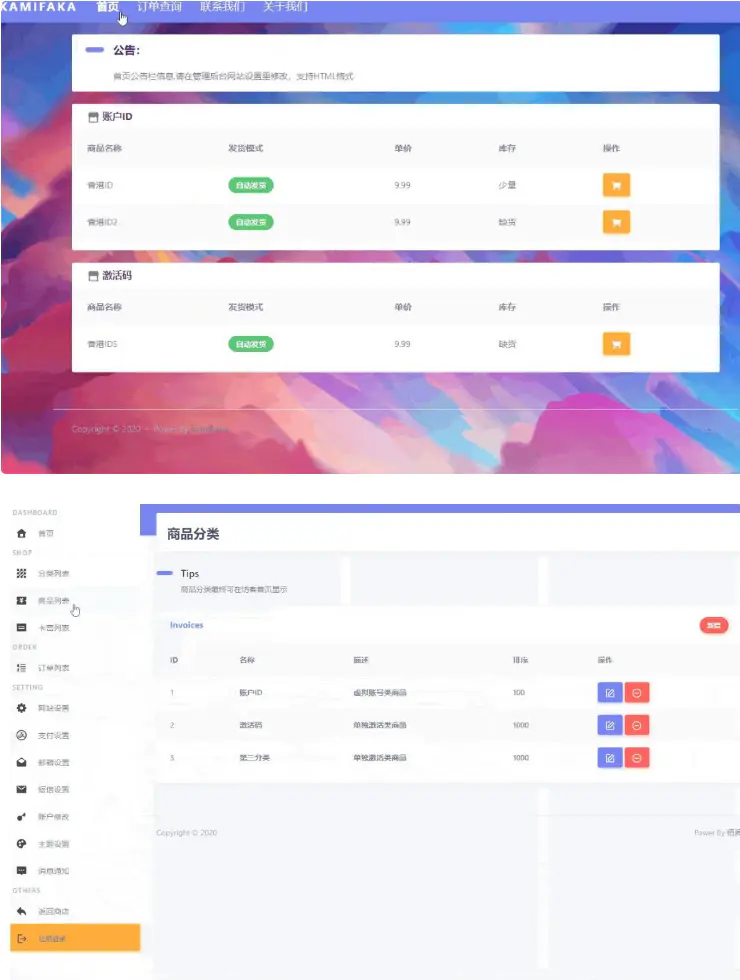 适用于各种电商、优惠卷、论坛邀请码、充值卡、激活码、注册码、腾讯爱奇艺积分CDK等,支持手工和全自动发货, 还有类似1688的分层批发模式。