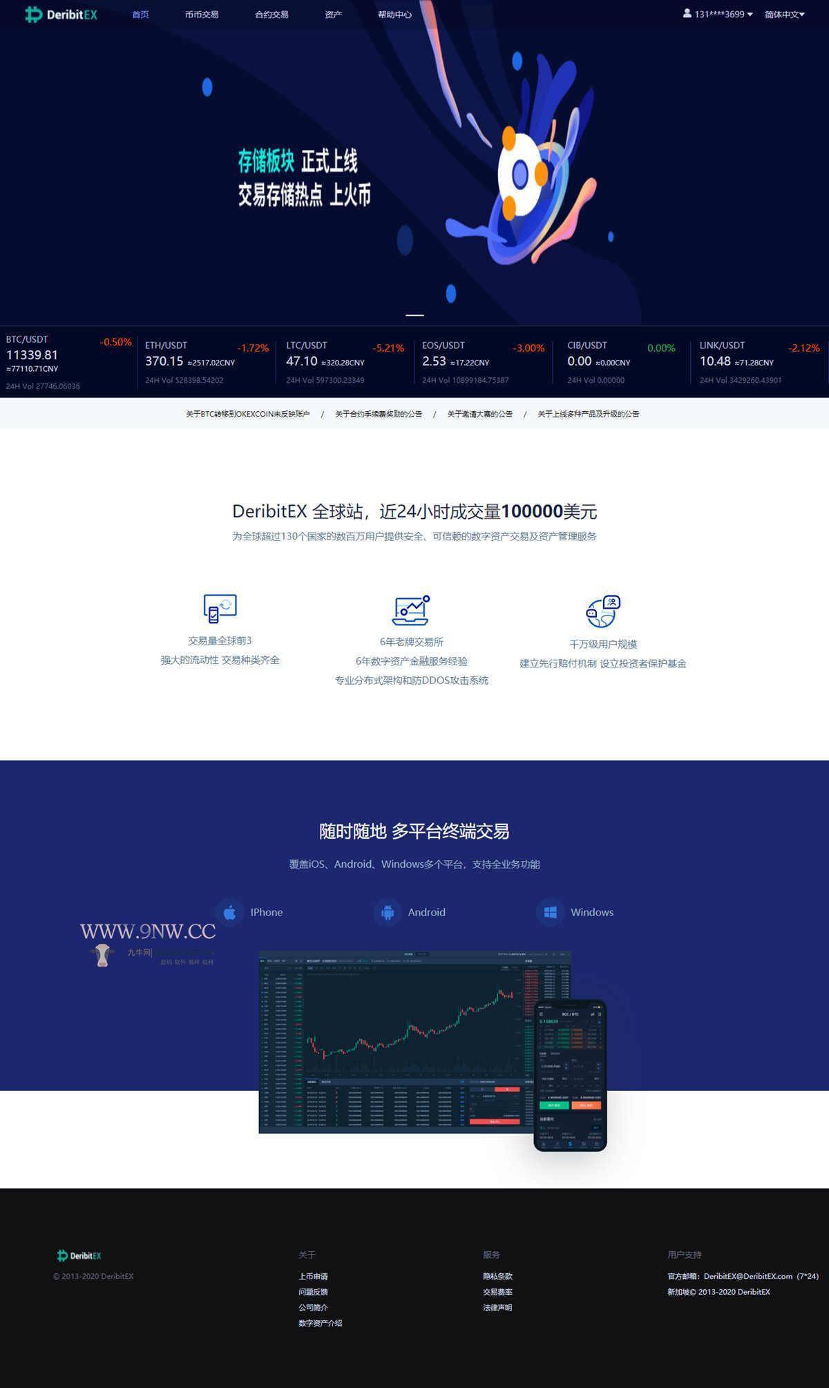 首页页面为轮播图、交易行情、主流币的涨幅行情。