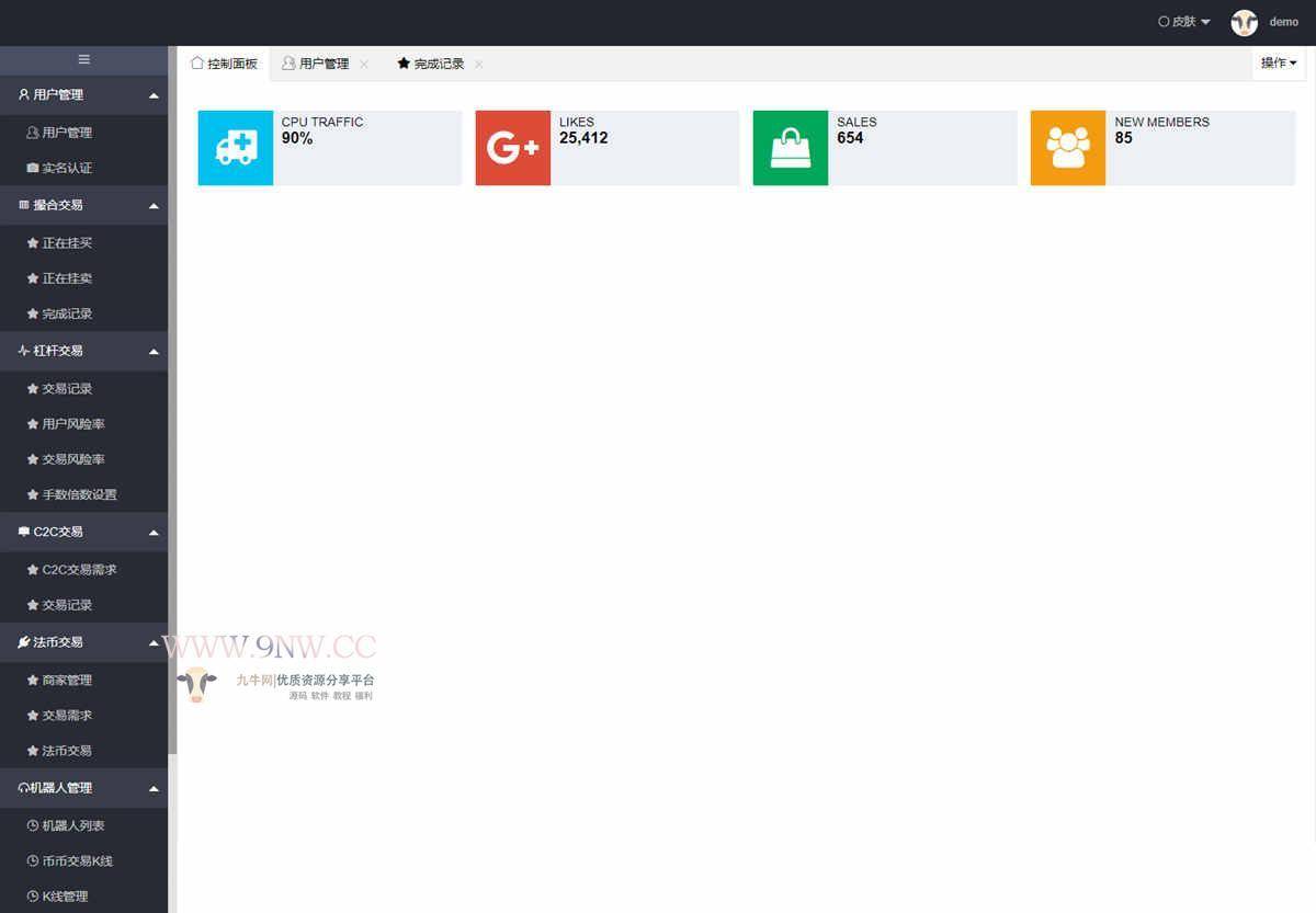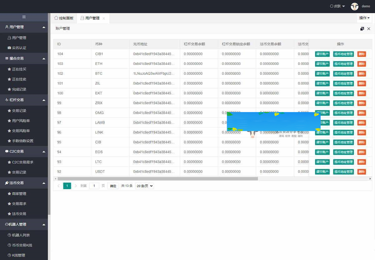 后台可对用户、代理商、钱包、资产、手续费等各个方面进行编辑。