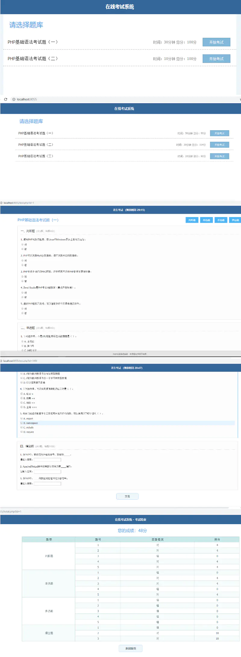 简单的PHP在线考试系统实例源码 无需数据库 无后台管理