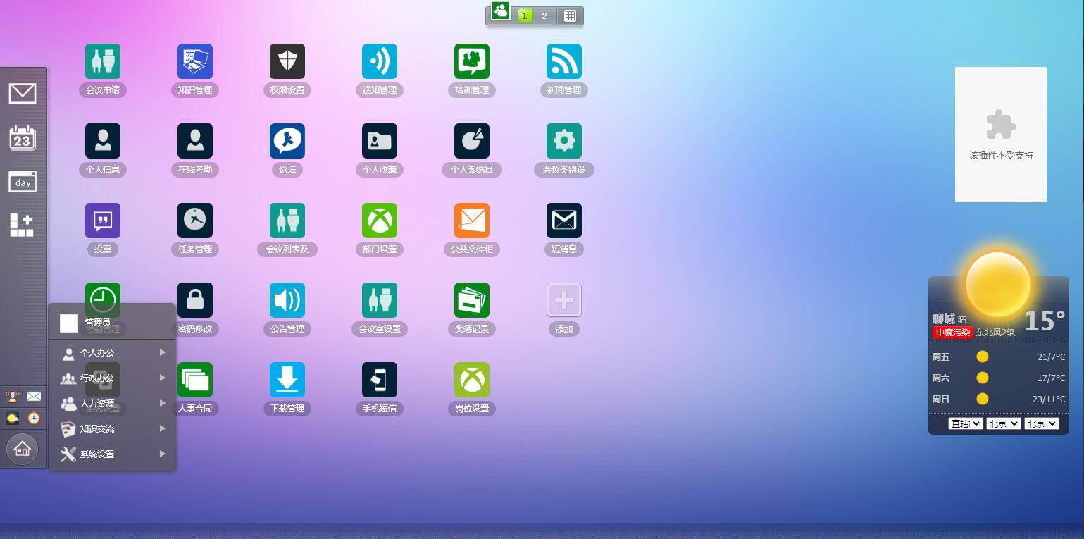3.安装完成后直接用管理员账号和密码登陆即可,进入OA软件,系统设置 > 菜单管理,拉到最下方,点提交,然后刷新浏览器,