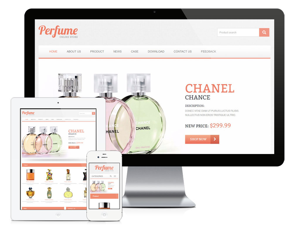 易优cms响应式香水外贸企业英文网站模板源码 自适应手机端 带后台