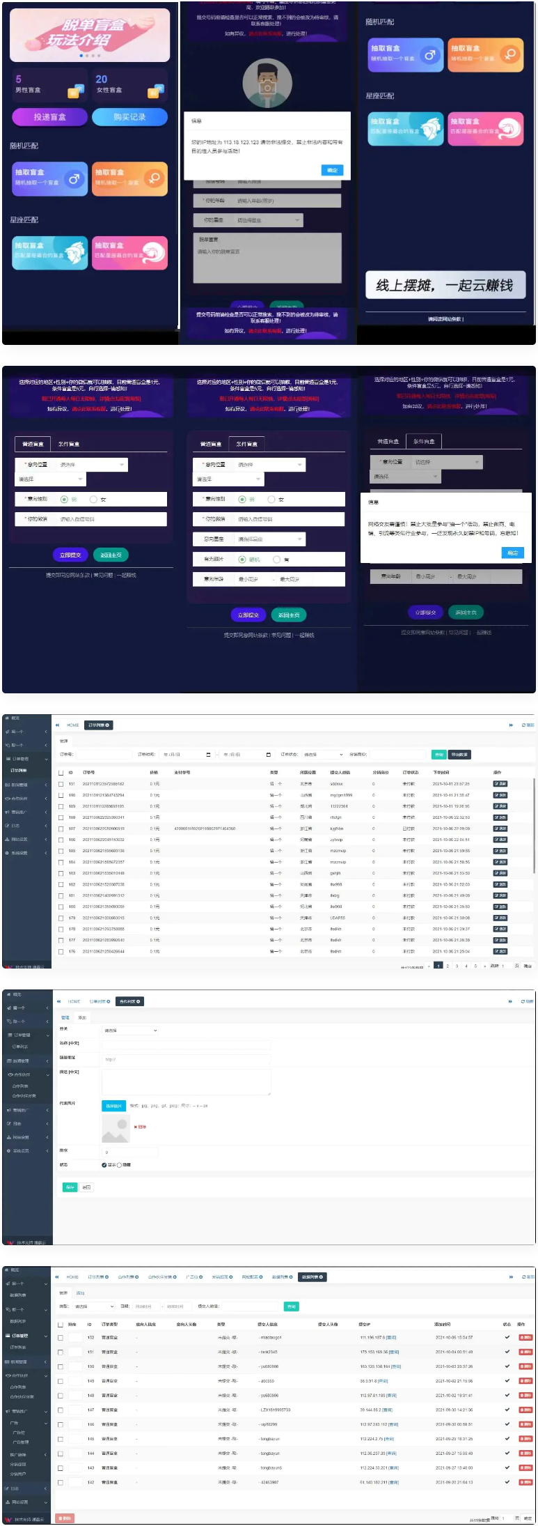 开启收费开启盲盒 投放付费 条件筛选付费!可设置付费购买代理(代理就是摊主红娘)