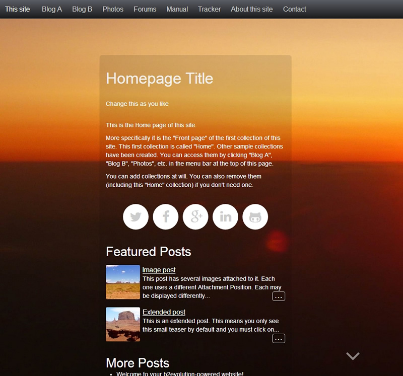 b2evolution是一个采用PHP+MySQL开发的,成熟的,优秀的Blog引擎。它包含了一个Blog工具所应具备的所有功能。