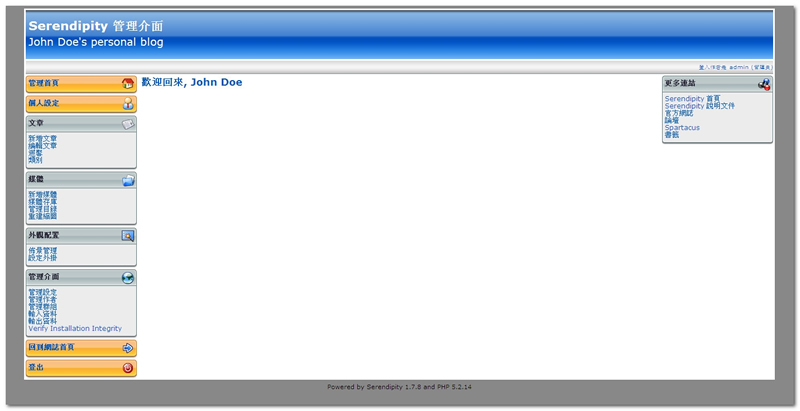 Serendipity是一个采用PHP实现的智能博客blog系统。Serendipity功能丰富,符合标准,基于BSDLicense开源。