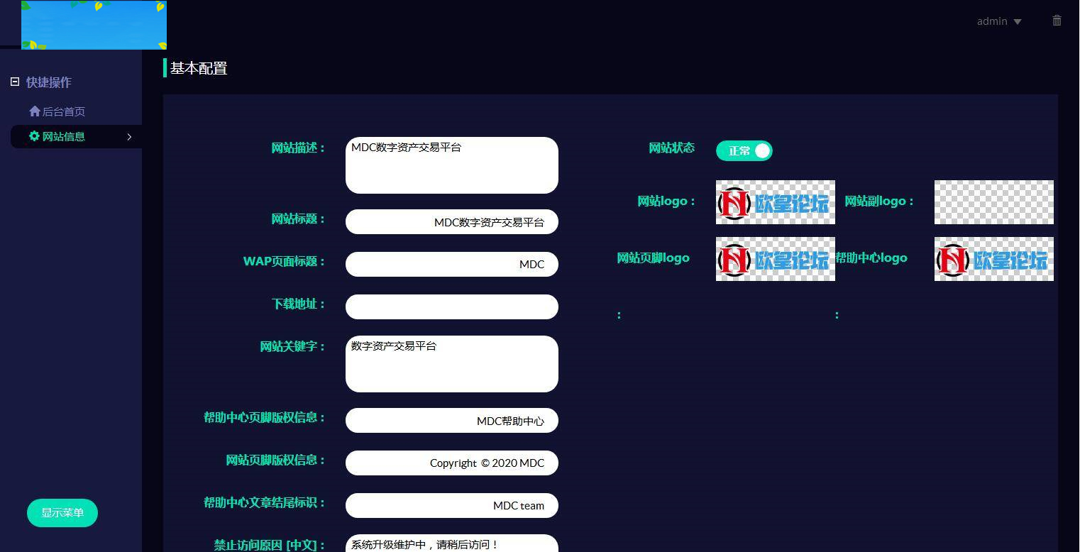 环境:Apache 2.4.46 + mysql5.6 + php5.6 1.新建站点--》上传--》解压 2.修改/index.php 数据库连接文件 3.Apache自动设置伪静态, 4.上传数据库文件www.ohbbs.cn.sql到数据库 5.后台地址 /admin 账号:admin 密码:www.ohbbs.cn 6.剩下的就看视频教程吧。教程中测试了K线完整,本站linux密码忘记了,就没有测试(非本站录制)