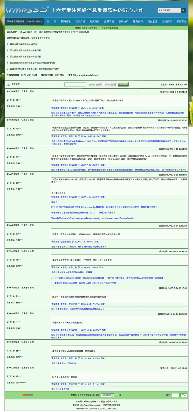 LFMessS 岭峰网行业专用留言系统 4.10.0 更新日志(2021-11-16):