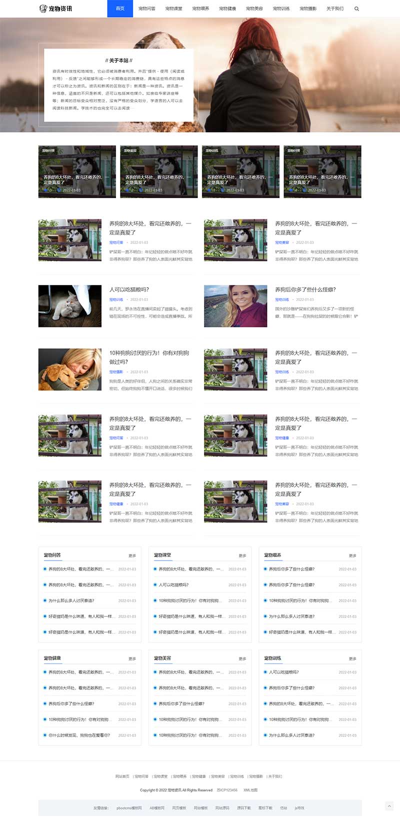 PbootCMS内核开发的网站模板,该模板适用于宠物资讯网站、宠物博客网站等企业,当然其他行业也可以做,只需要把文字图片换成其他行业的即可;