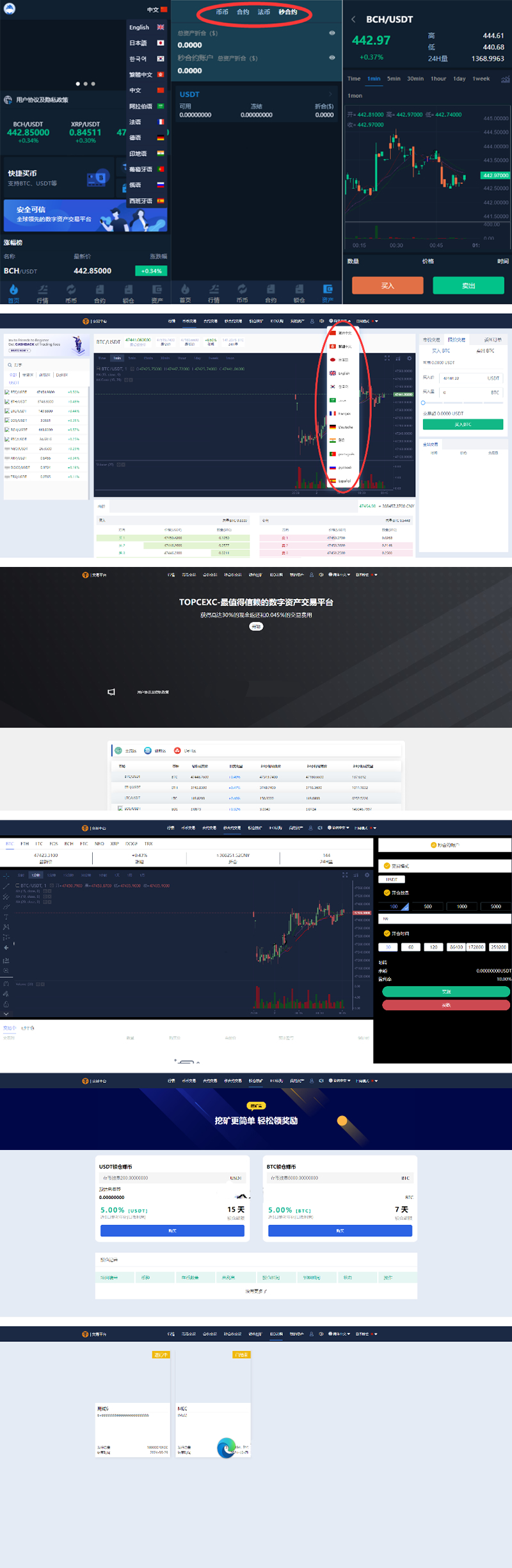 多语言交易所,12国语言,秒合约,申购,锁仓,K线完整,脚本最全,带教程,日夜模式。