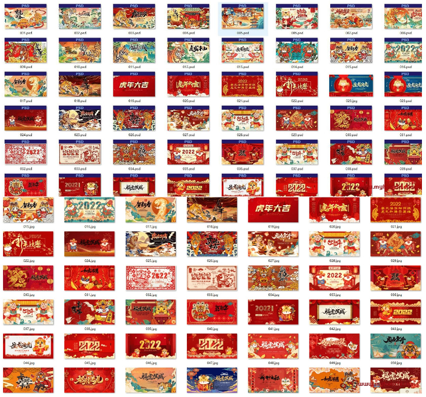 【最新精选】63款2022虎年贺岁新春海报素材合集、附带源文件、预览图